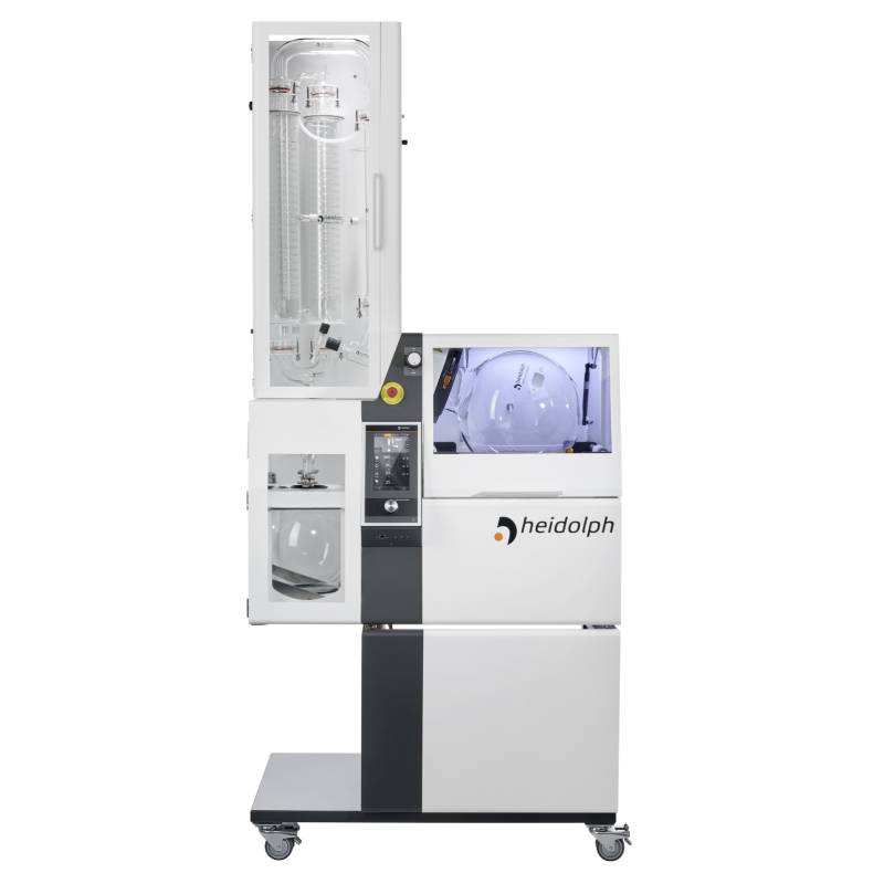 蒸發(fā)瓶和接收瓶受透明、防霧 PMMA 防護罩保護,有效提高安全性。水/油兩用加熱鍋可用水或浴液,最高加熱溫度可達 180 °C。集成自動補液系統(tǒng)、溢流口及底部放液閥。EASY LOCK可實現(xiàn)單人更換蒸發(fā)瓶。